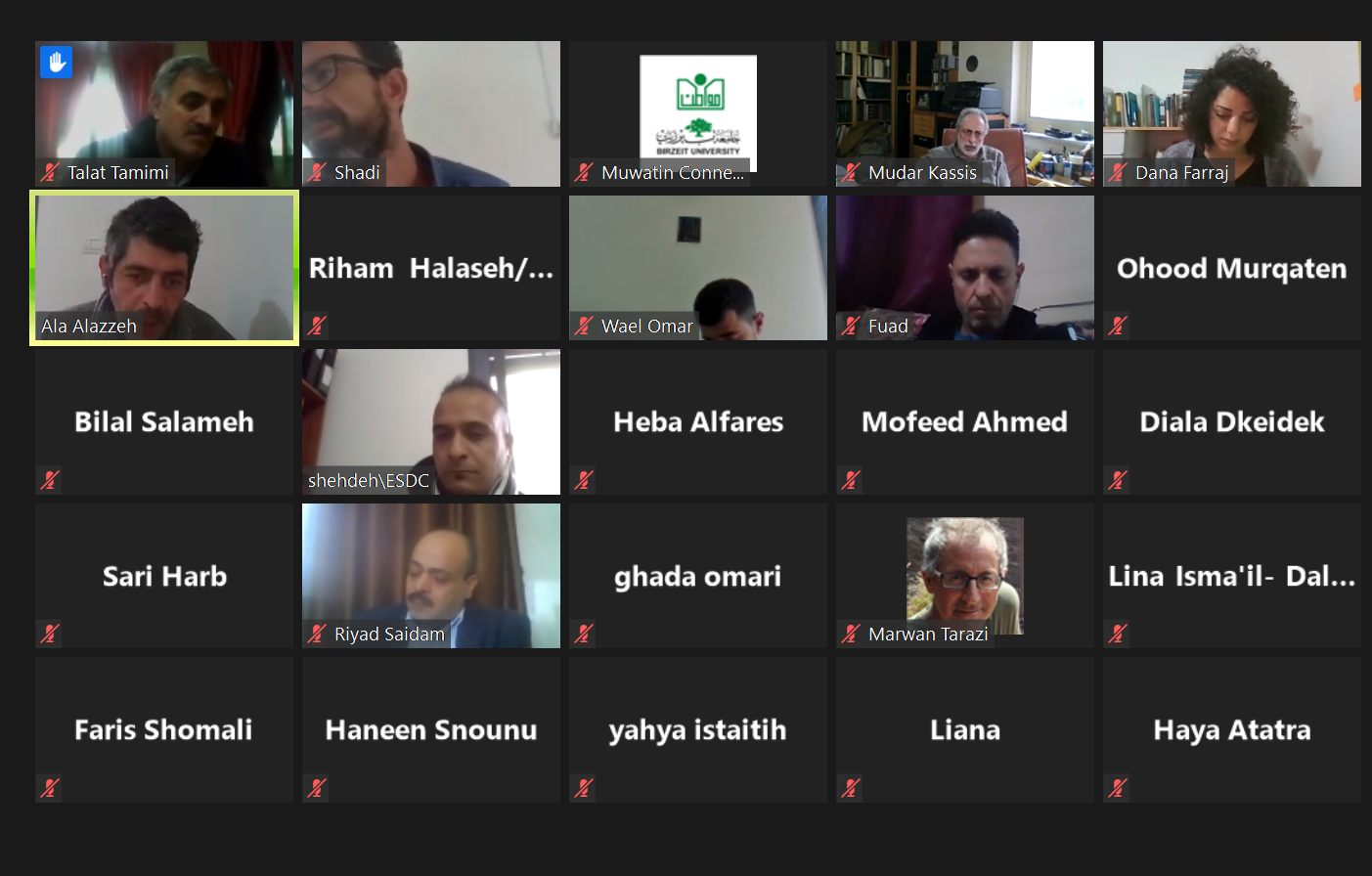 عقد معهد مواطن للديمقراطية وحقوق الإنسان – جامعة بيرزيت، يوم الأحد 21 آذار/مارس2021، عبر الفضاء الافتراضي، لقاءً لنقاش "تقييم الظرف الذي تمت فيه الدعوة إلى الانتخابات العامة وأثر الدعوة إ