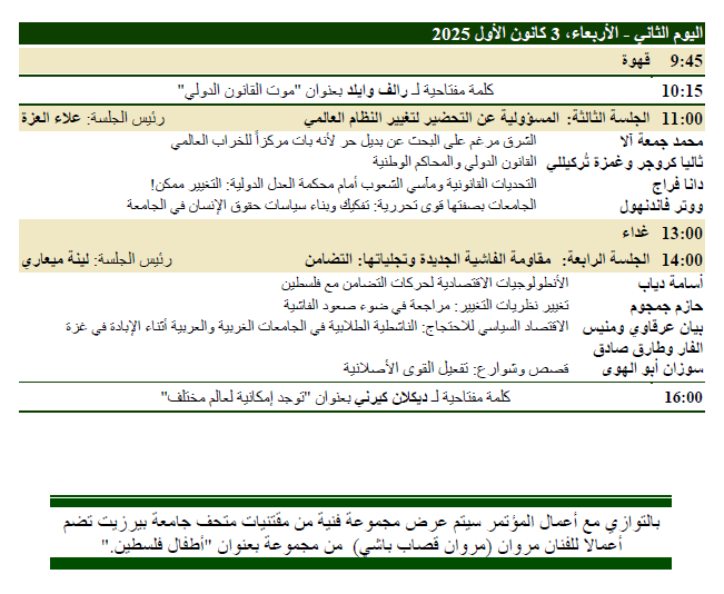 ختُتِمت أعمال مؤتمر معهد مواطن للديمقراطية وحقوق الإنسان - جامعة بيرزيت اليوم السبت، في دورته الثامنة والعشرين، تحت عنوان "فاعلو التغيير المجتمعي: تضييق مساحات العمل واستراتيجيات الصمود"، بترتيب هجين في حرم جامعة بيرزيت وعبر الفضاء الإلكتروني، وذلك بمشاركة العديد من الأكاديميين والمفكرين من مختلف